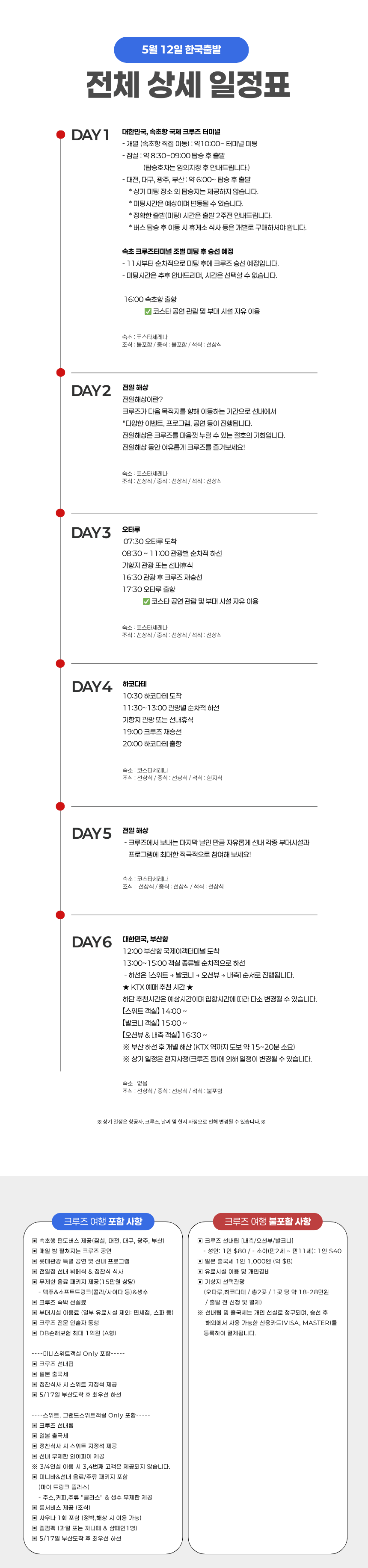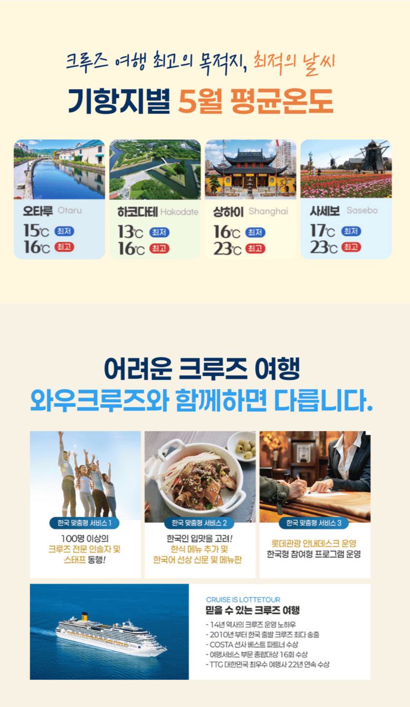 [속초출발/부산도착] 26년5월12일 북해도 크루즈여행 5박6일 특별전세선 코스타 세레나