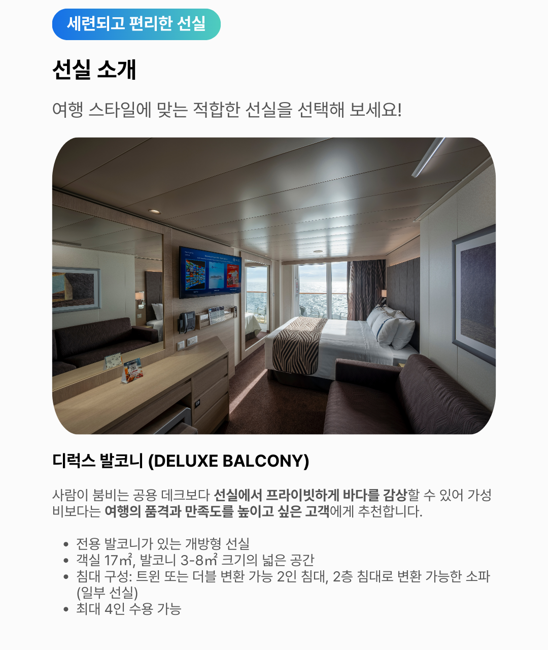 [와우크루즈단독] 이동이 휴식이 되는 서부지중해 4개국 크루즈, 발코니 초특가
