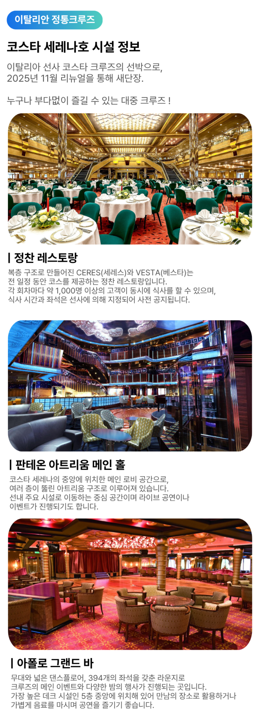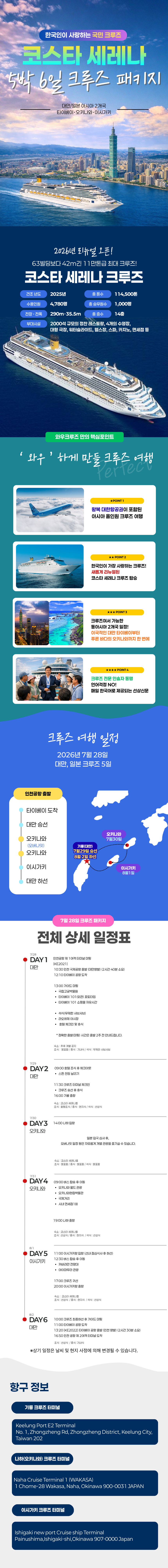 [26년 7월 28일 출발] 코스타 세레나 대만/일본 아시아 2개국 5박 6일크루즈 상세페이지