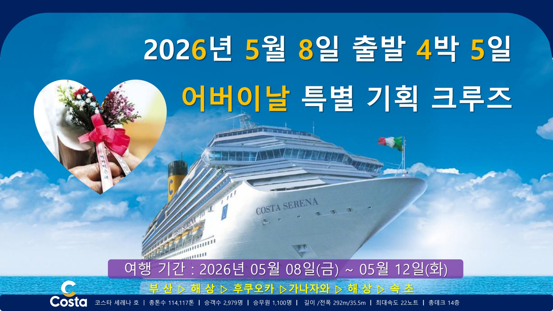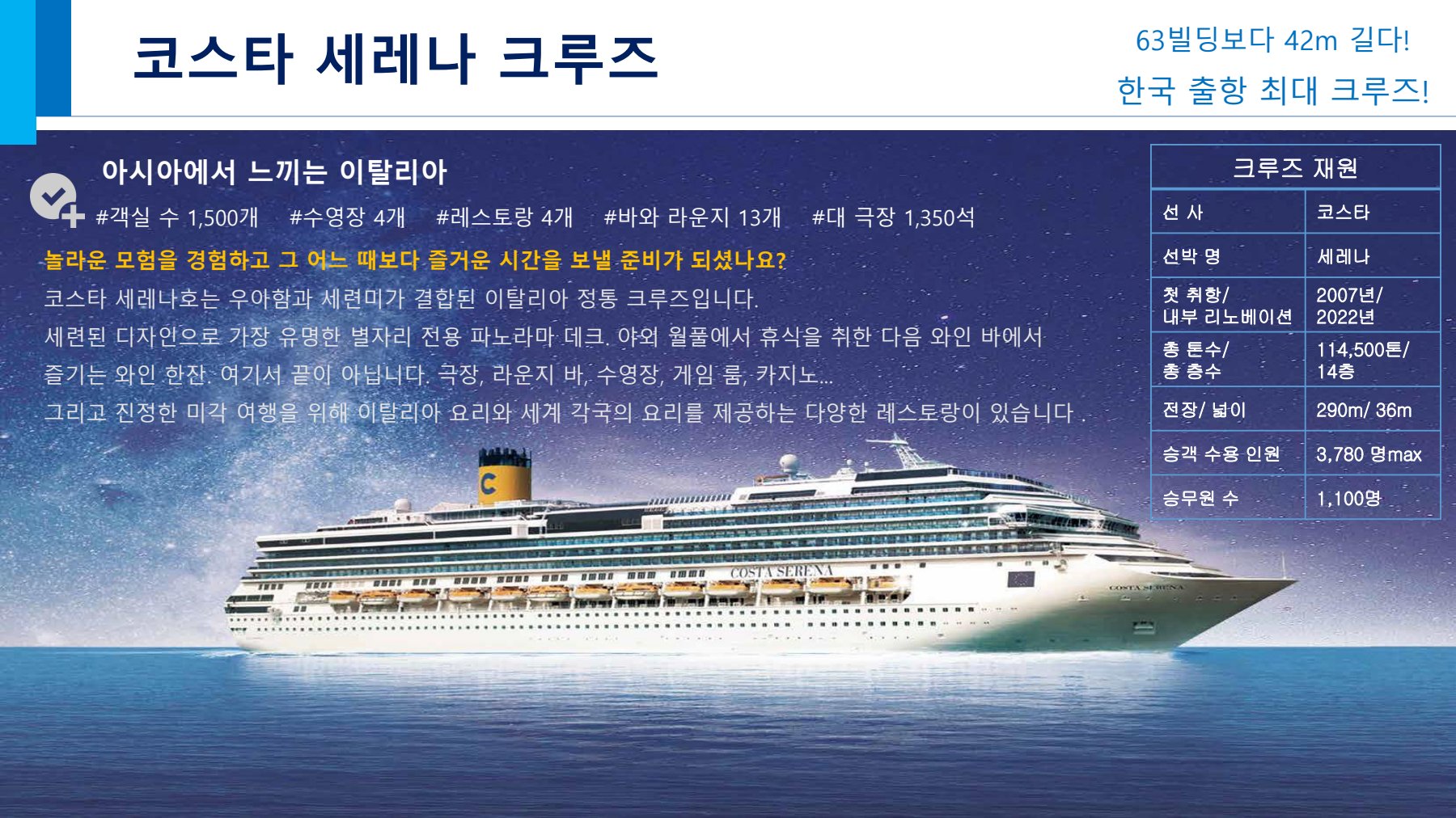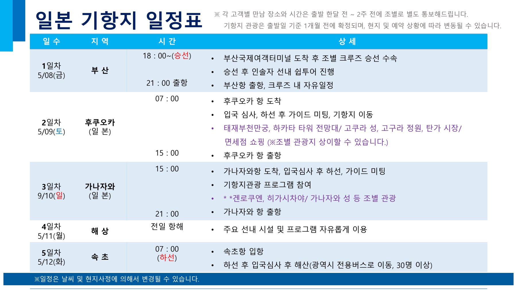 26년 5월 8일 부산출발/속초도착 후쿠오카/가나자와 4박 5일 크루즈 여행 코스타 세레나